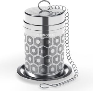Much has been written about tea bags and microplastics, so I’ve taken to pouring out a tea bag into a tea strainer before steeping. I like how this mesh strainer ($10 for 1 at Amazon or $16 for two) has a little hook for easy removal from the cup or pot. And it can sit down in the bottom of the vessel for steeping, instead of the kinds of tea strainers that hold the leaves at the top.